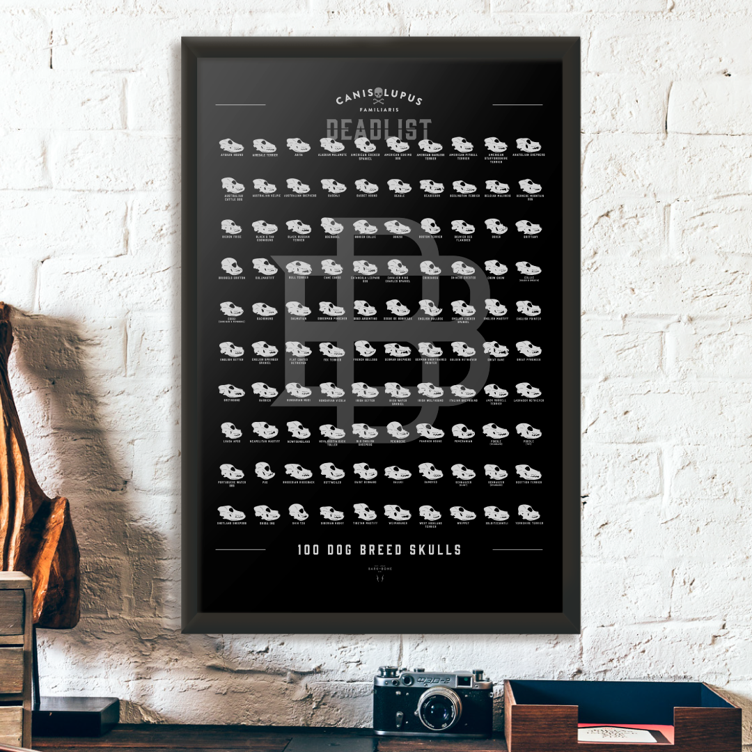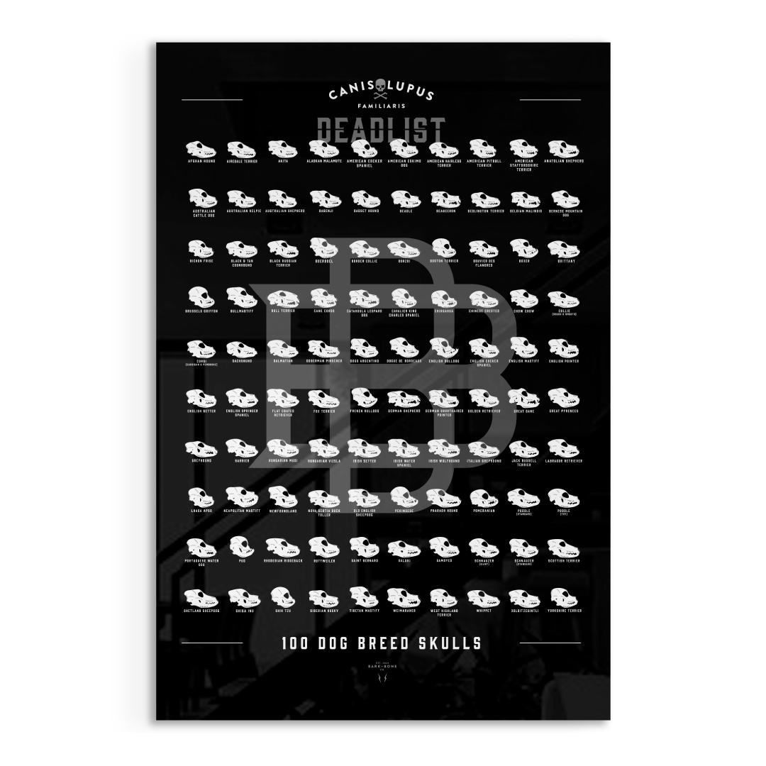 The Deadlist is the bony counterpart to The Blacklist — a visual catalogue of 100 skulls from the breeds that built Bark & Bone.